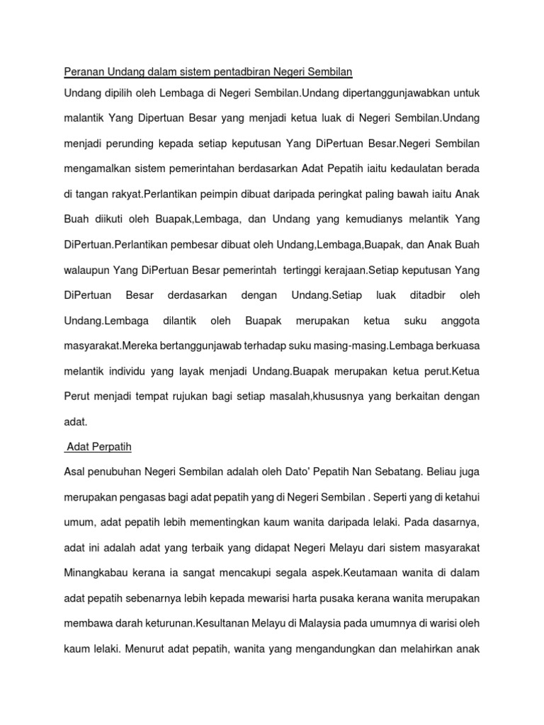 Peranan Undang Dalam Sistem Pentadbiran Negeri Sembilan Docx