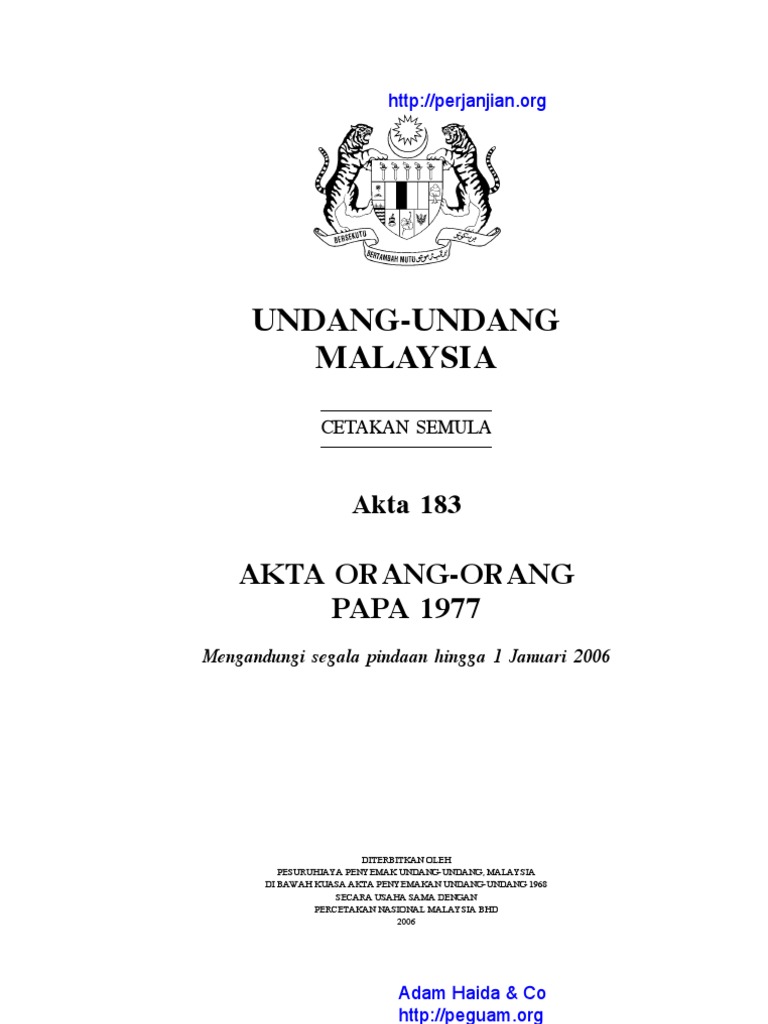 Pdf Undang Undang Malaysia Akta Orang Orang Papa 1977 Nurul Ainaa Academia Edu