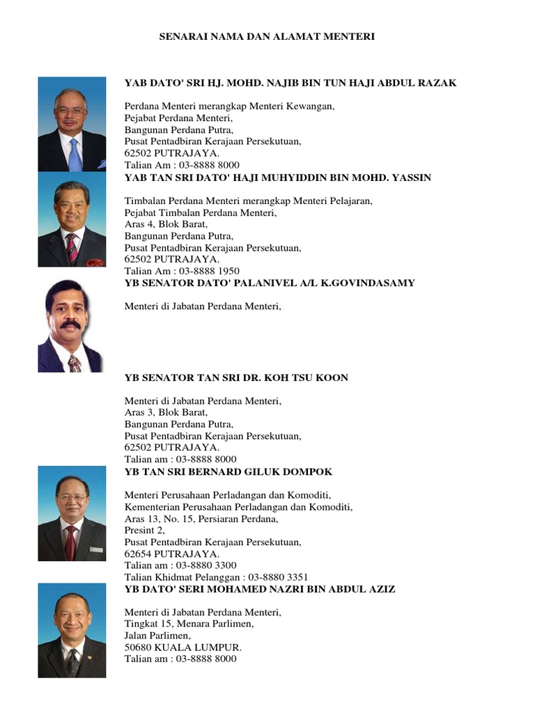 Senarai Nama Dan Alamat Menteri