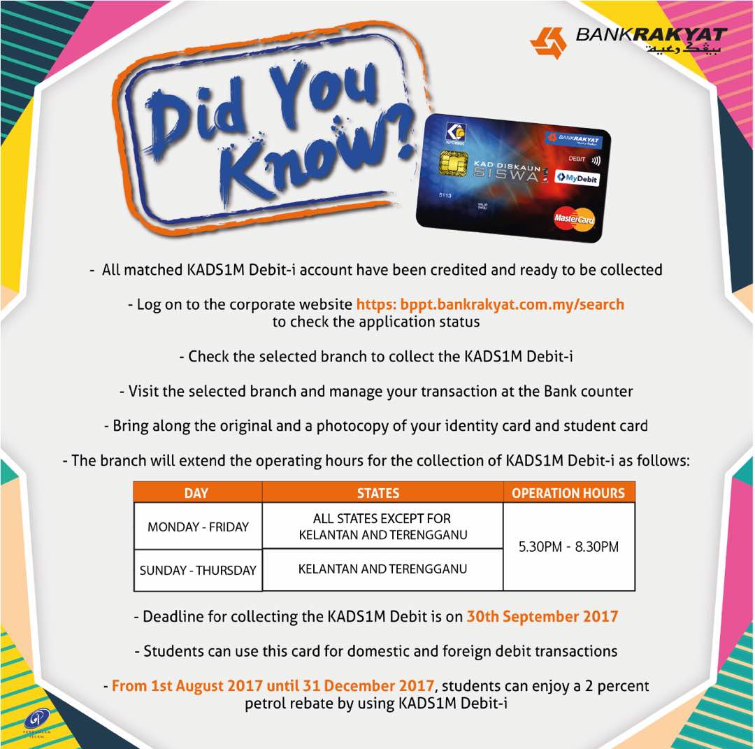 Bank Rakyat A Twitter You May Now Check Your Kads1m Debit I Application Status Online And Collect Your Card At The Selected Branch Before 30 September 2017 Https T Co Zblaghynmp