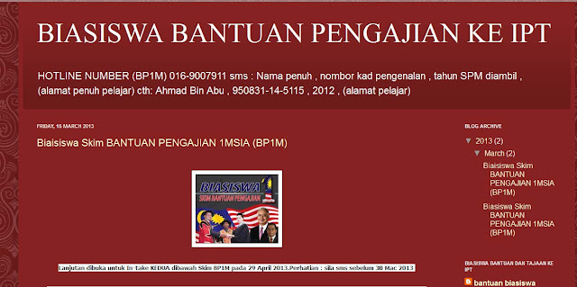 Biasiswa Skim Bantuan Pengajian 1msia Bp1m Di Biasiswa1msia Blogspot Com Adalah Palsu My Adha