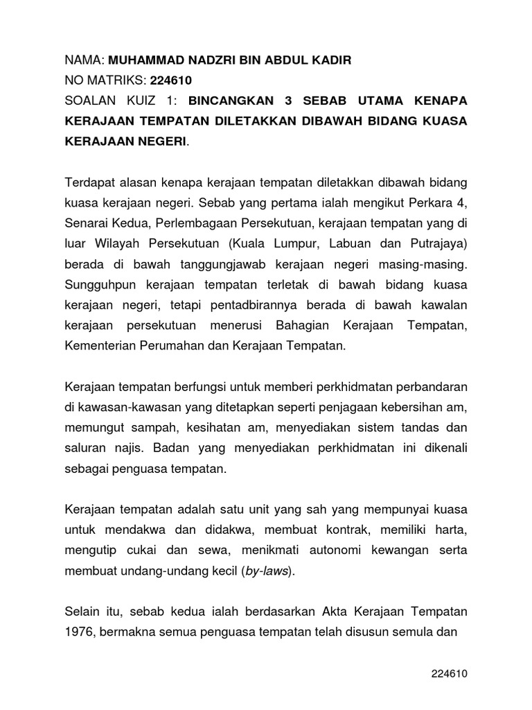 Kuiz Kerajaan Tempatan Docx