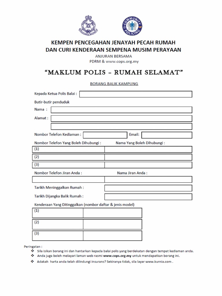 Borang Maklumat Balik Kampung Bagi Polis Diraja Malaysia Royal Malaysia Police Facebook