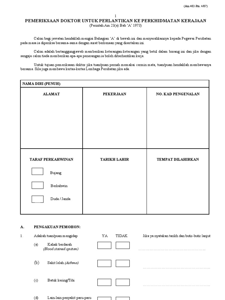 Borang Medical Check Up Kerajaan