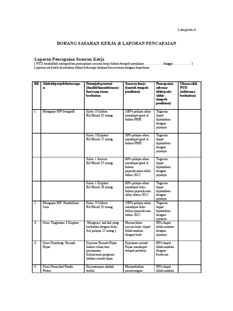 Doc Lampiran A Borang Sasaran Kerja Laporan Pencapaian Sang Kaya Academia Edu