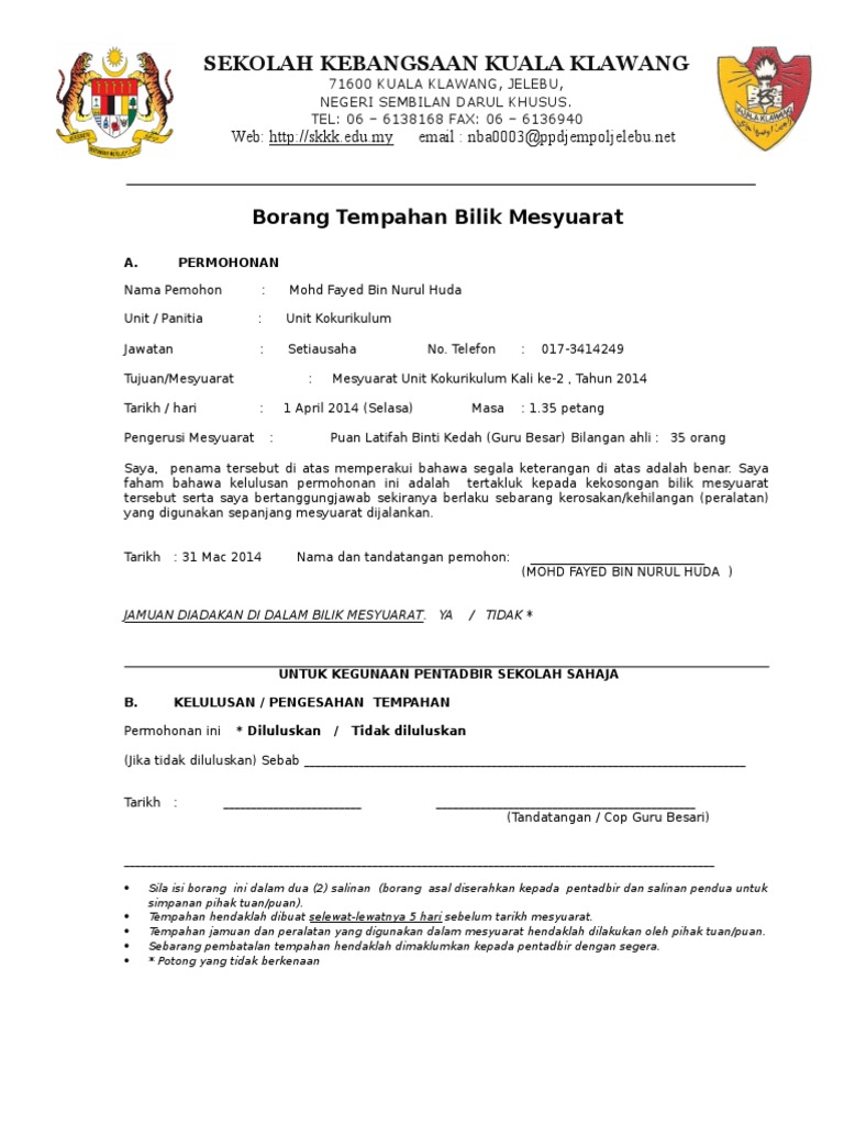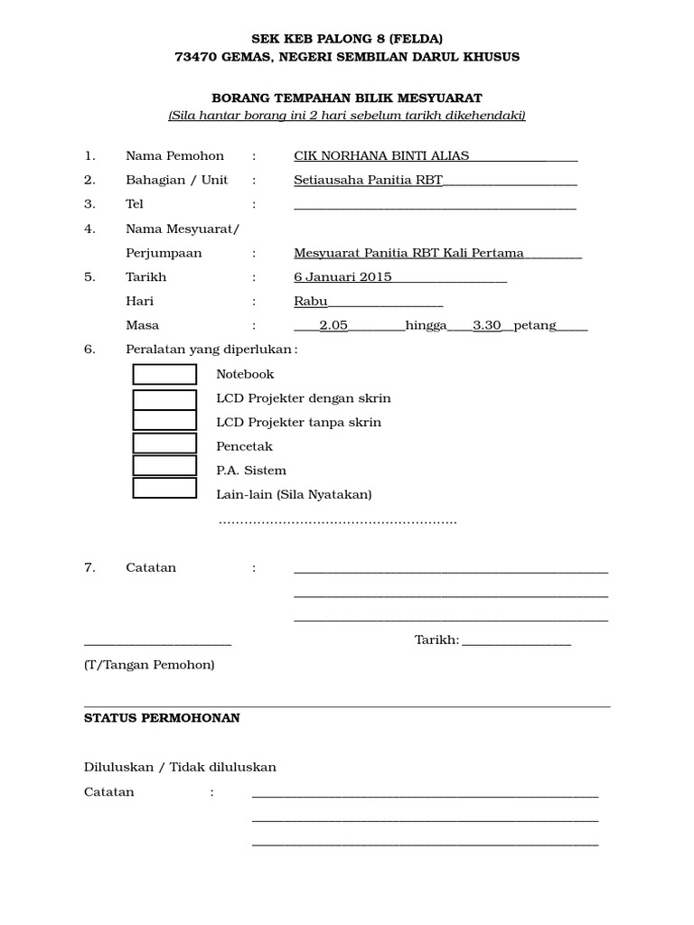 Contoh Borang Tempahan Bilik Mesyuarat Fill Online Printable Fillable Blank Pdffiller