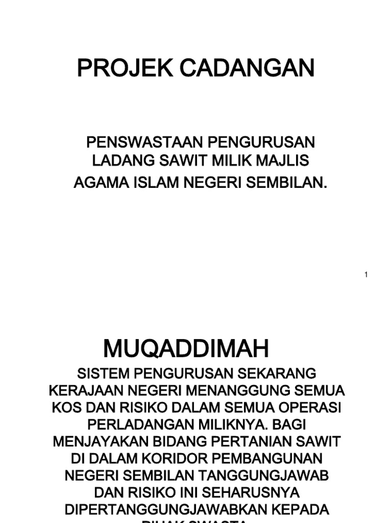 Projek Cadangan Penswastaan Pengurusan Ladang Sawit Milik Majlis Agama Islam Negeri Sembilan