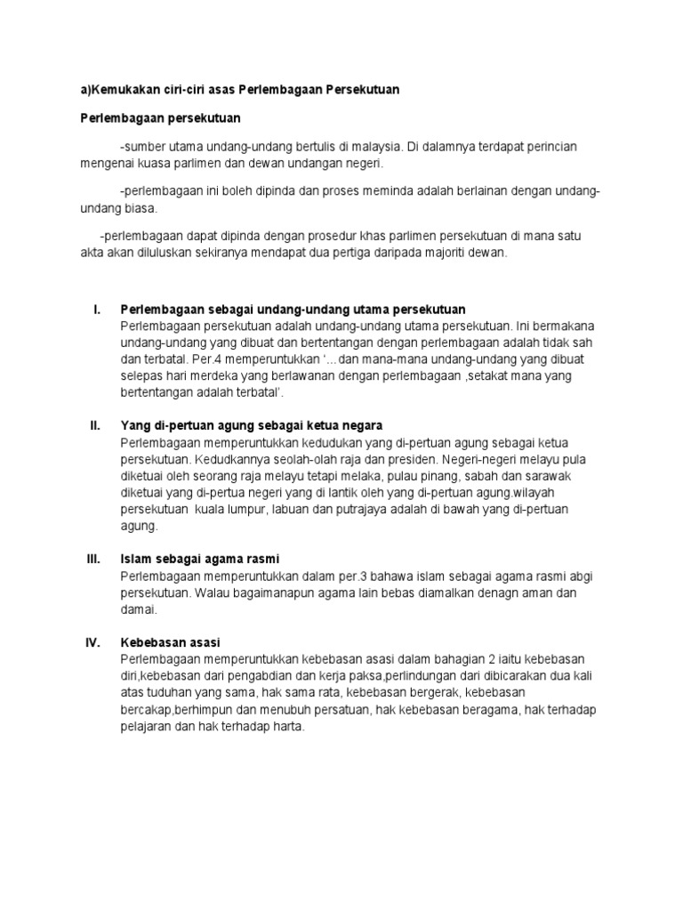 Perlembagaan Persekutuan Mempunyai Ciri Ciri Asas Berikut Perlembagaan Course Hero