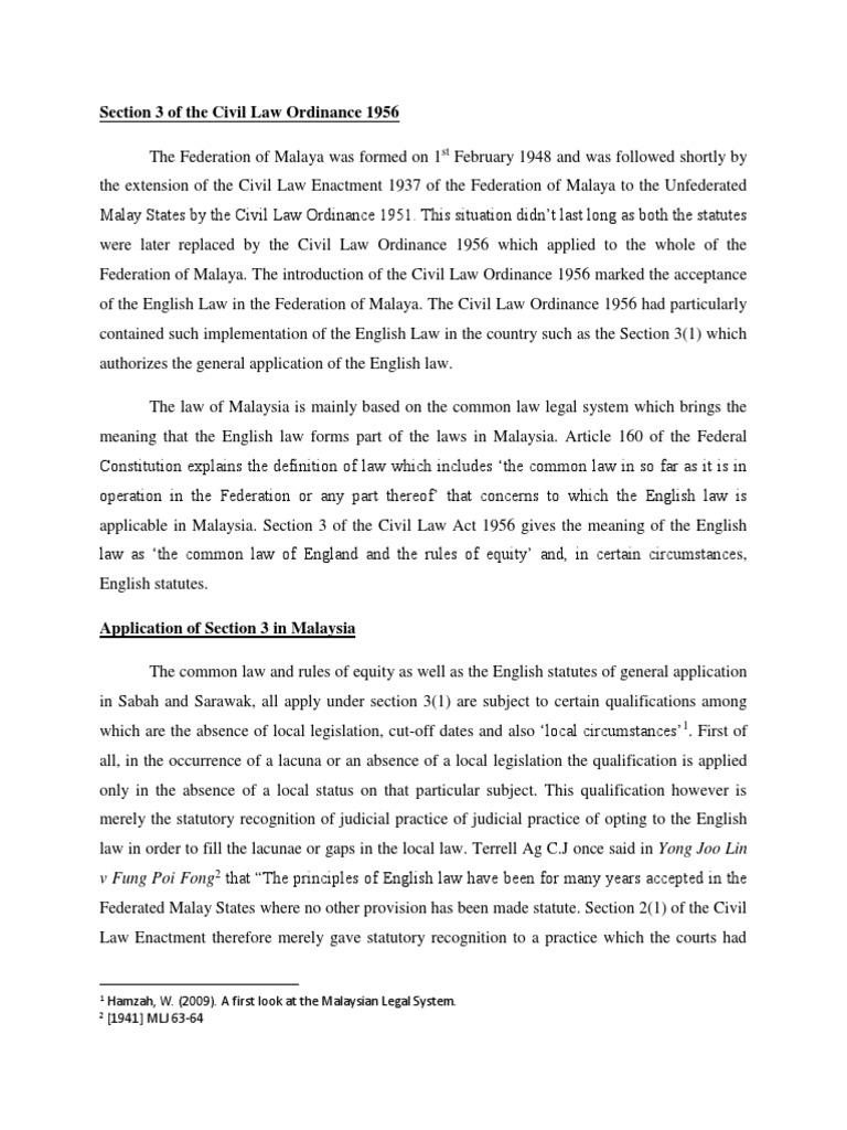 Section 3 Of The Civil Law Ordinance 1956 Malaysia Common Law