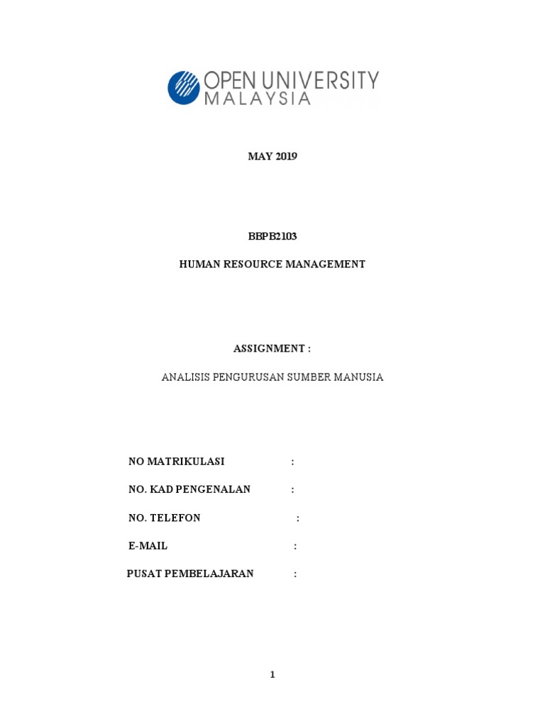 Full Assignment Bbdh4103 Pembangunan Sumber Manusia Doc Kod Kursus Oum Business School May 2019 Bbdh4103 Pembangunan Sumber Manusia No Matrikulasi Course Hero