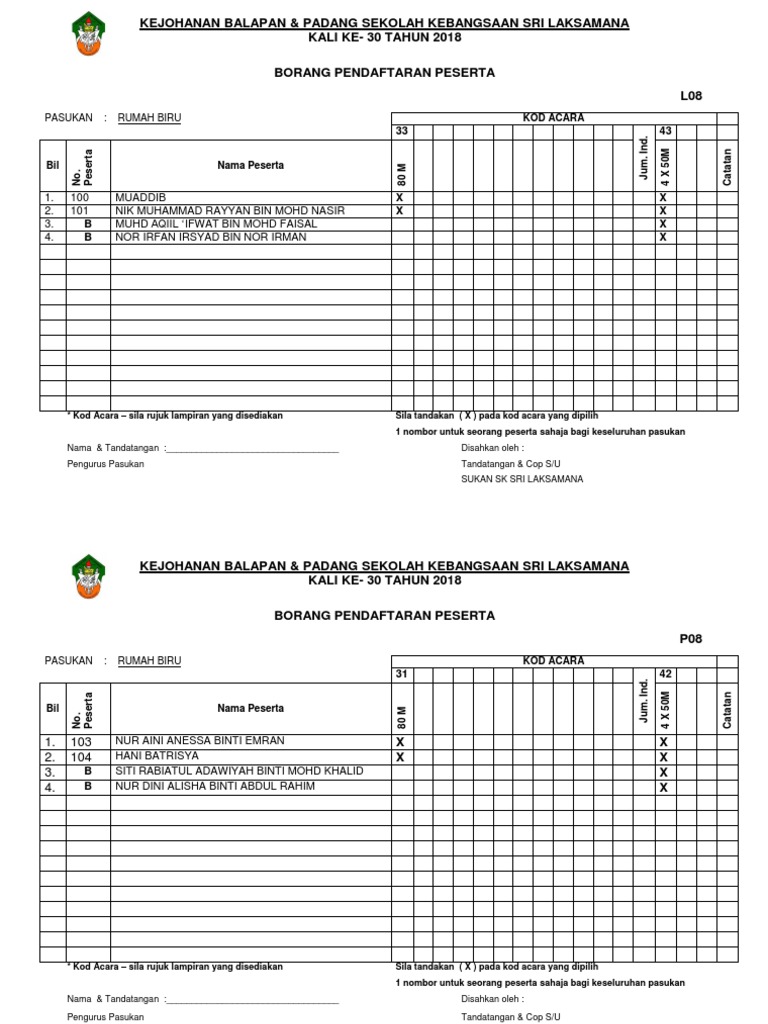Contoh Borang Pendaftaran Peserta Kem