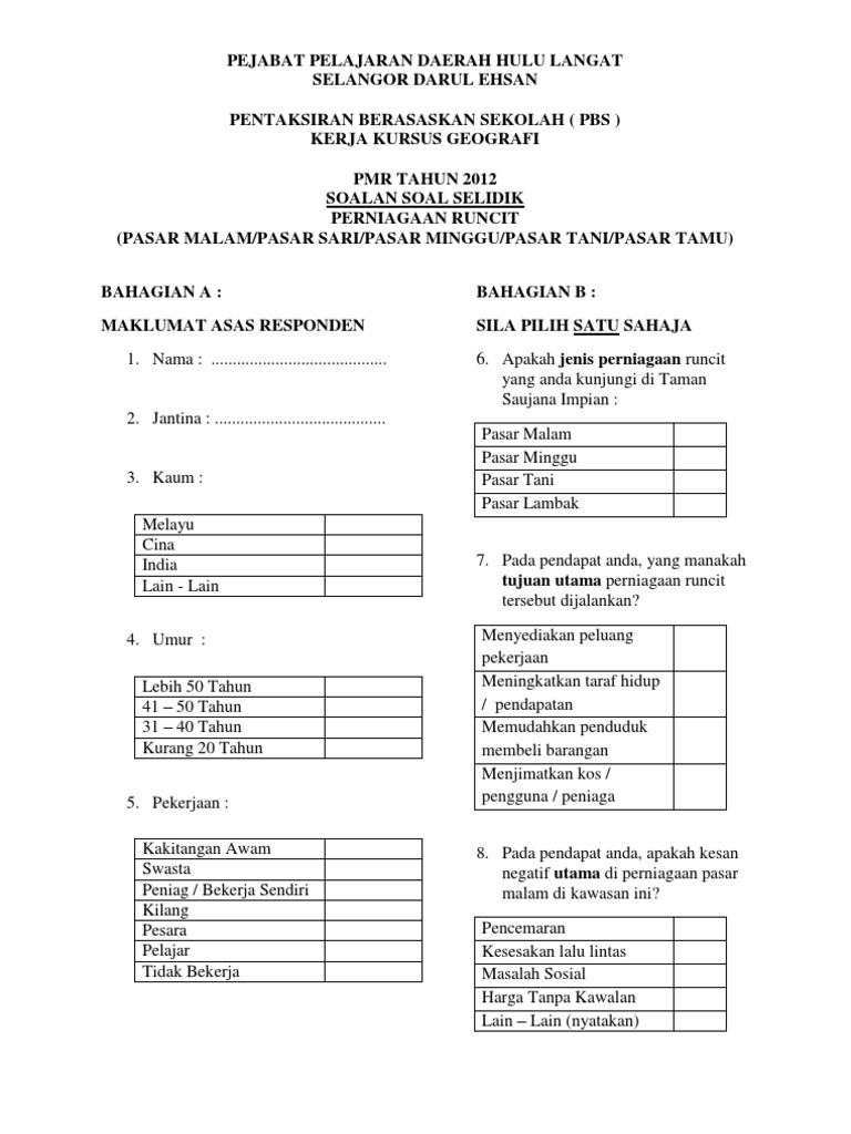 Contoh Borang Soal Selidik Geografi Pt3 2015 Mobile