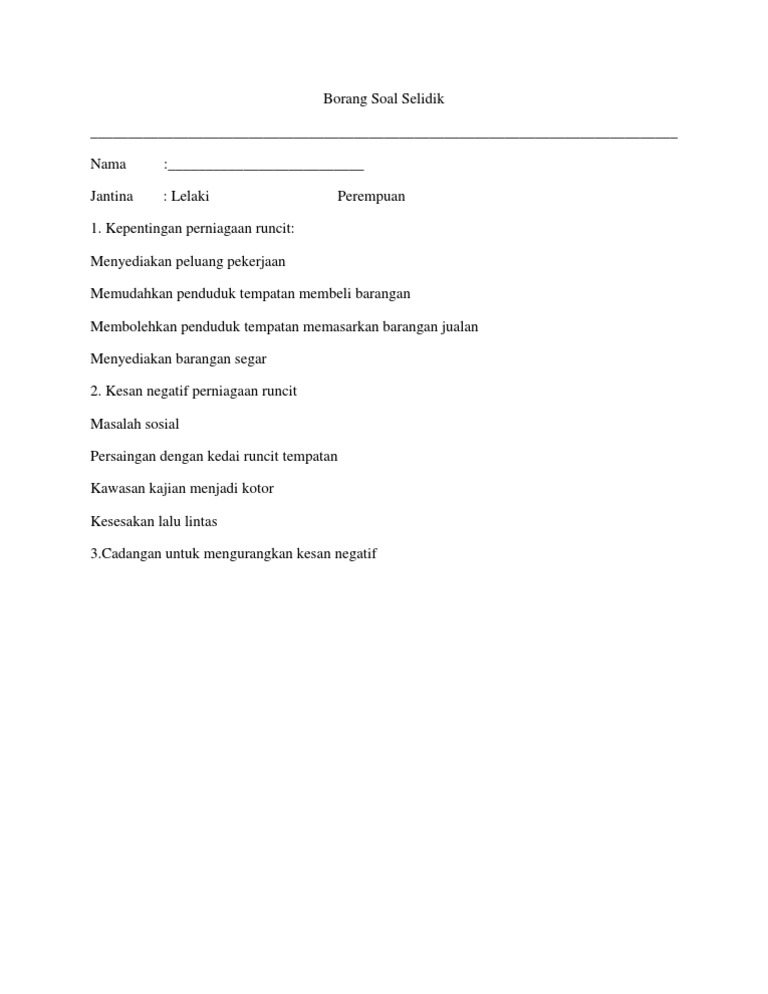 Contoh Borang Soal Selidik 2020 Banyak Contoh Portal Malaysia