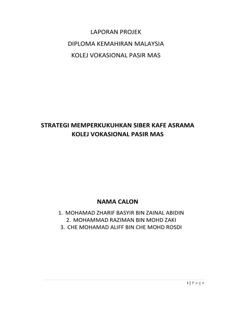 Contoh Laporan Projek Diploma Kemahiran Malaysia
