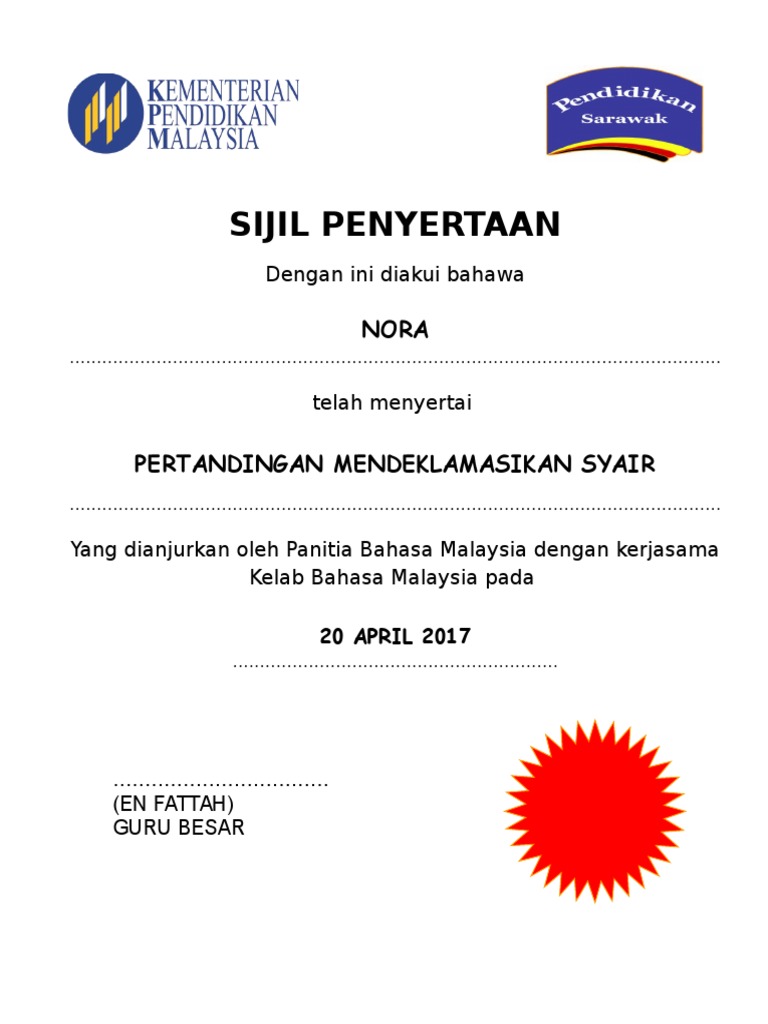 Contoh Sijil Penghargaan Dan Penyertaan