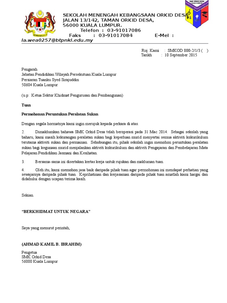 Contoh Surat Rasmi Permohonan Bantuan Peralatan Bridalbiot