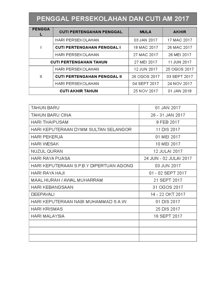 Kalendar Cuti Umum Dan Cuti Sekolah 2017
