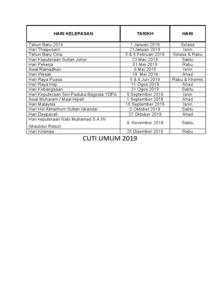 Cuti Umum 2019 1