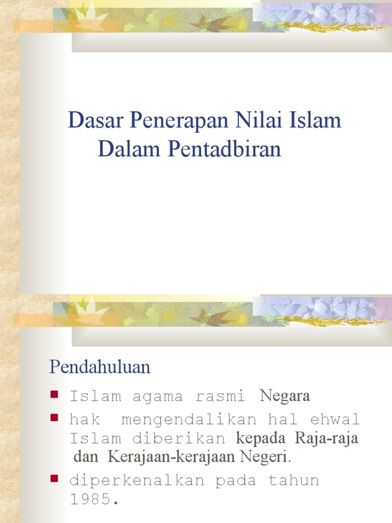 Dasar Penerapan Nilai Nilai Islam Dalam Pentadbiran Pptx