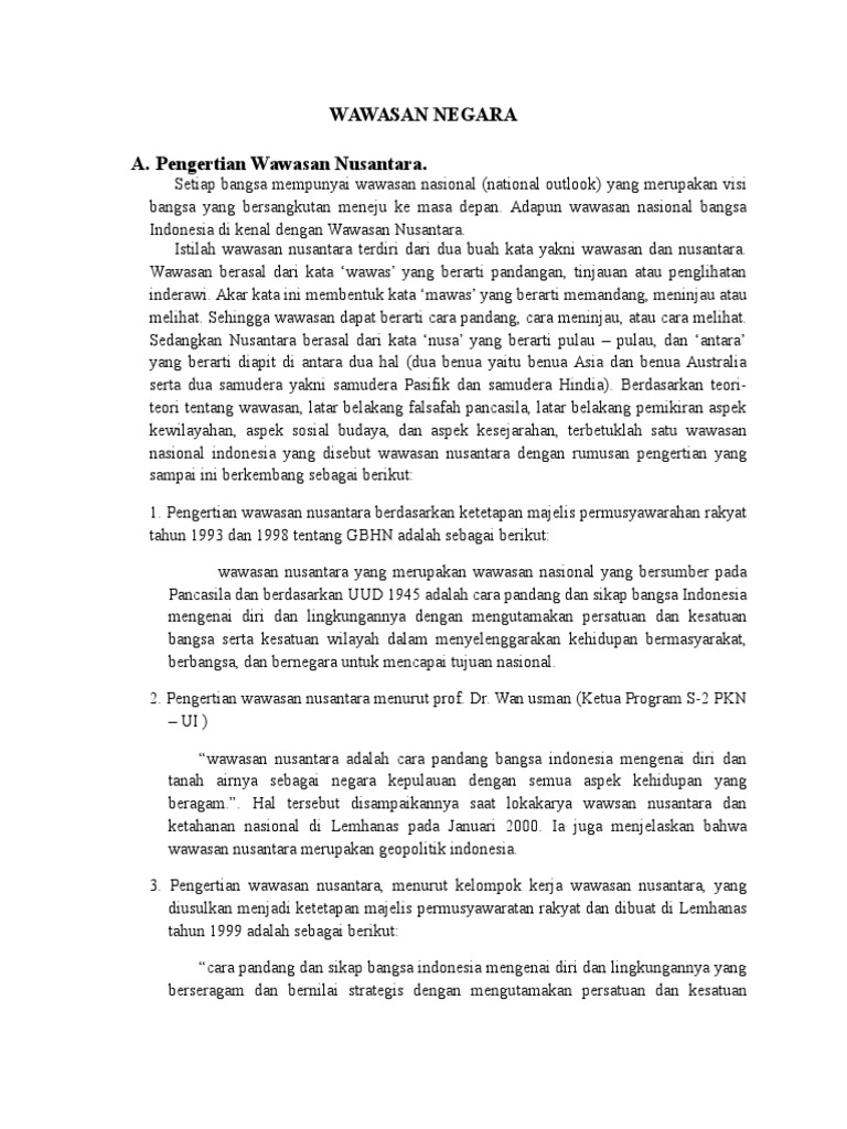 Wawasan Nusantara Adalah Konsep Kedudukan Fungsi Tujuan