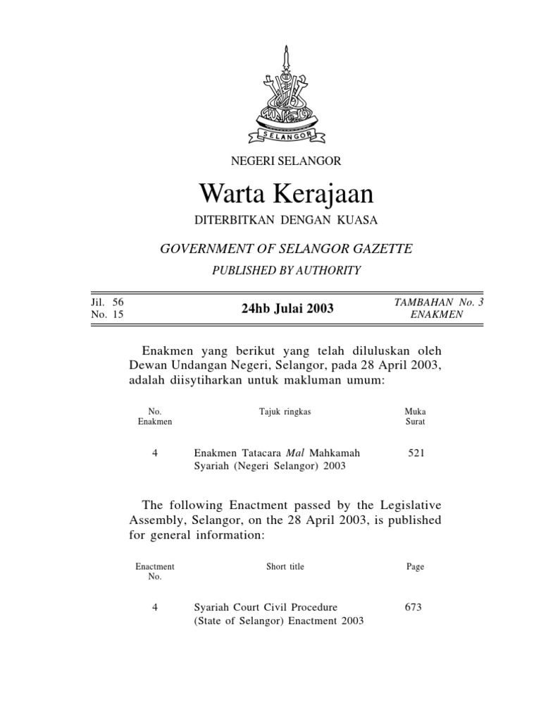 Enakmen Tatacara Mal Mahkamah Syariah Negeri Selangor 2003 Peguam Syariepeguam Syarie