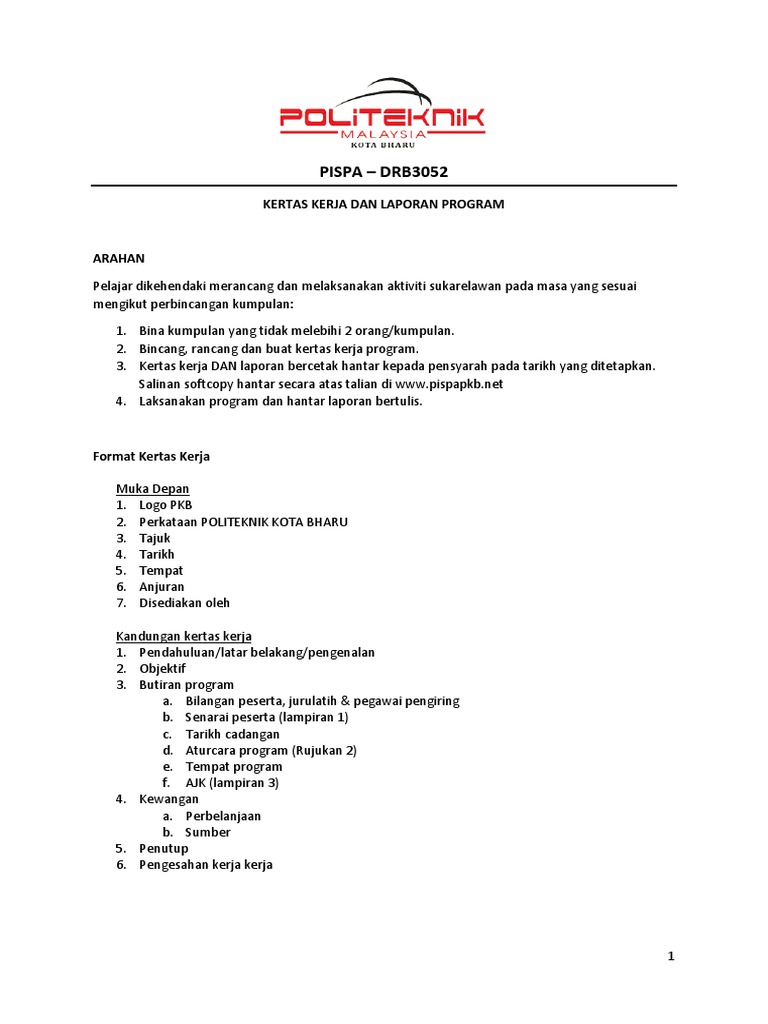 Format Kertas Kerja 1 Doc 1 0 Tujuan 2 0 Latar Belakang Program 3 0 Objektif 4 0 Hasil Pembelajaran Program 5 0 6 0 Kaedah Cara Pelaksanaan Program Course Hero