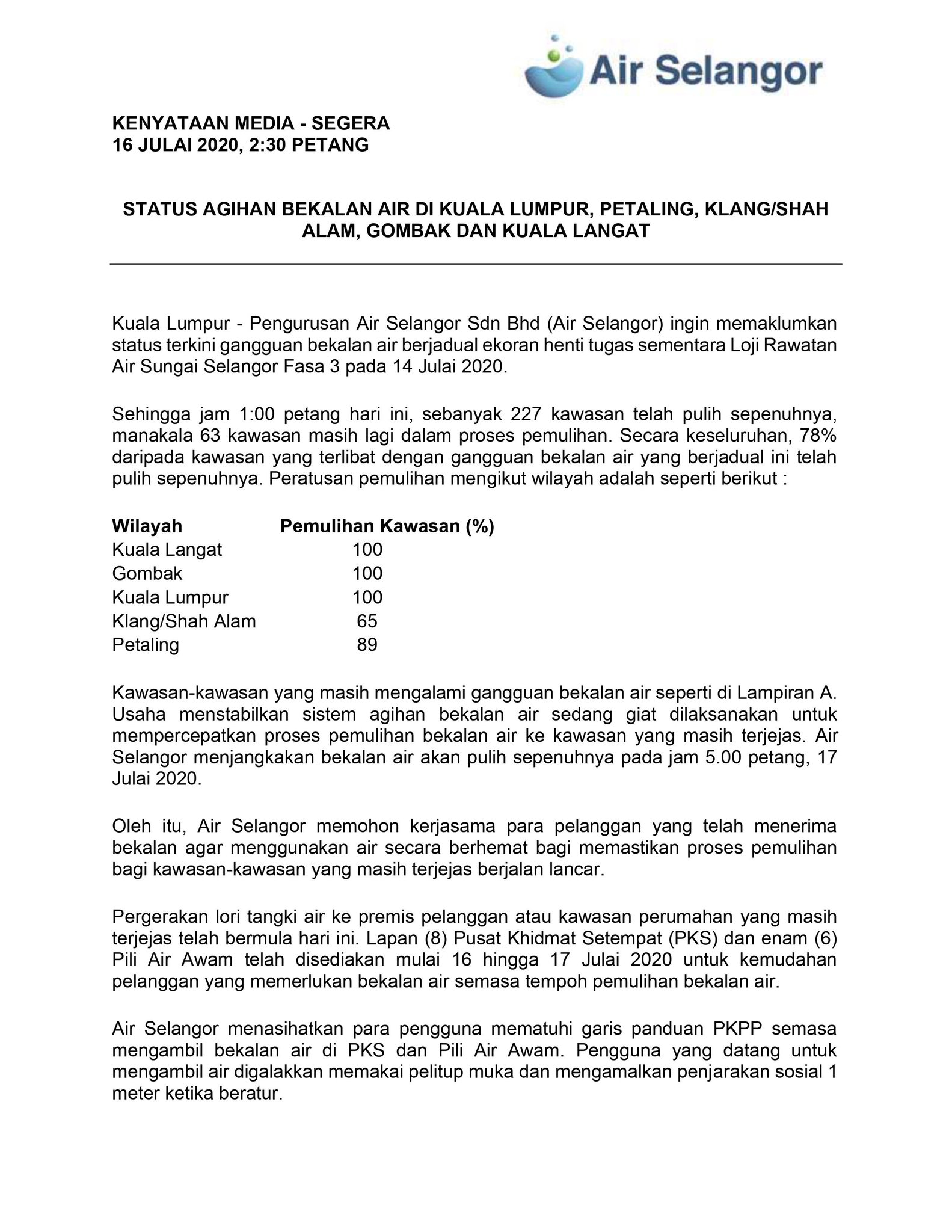 Air Selangor On Twitter Kenyataan Media Status Agihan Bekalan Air Di Kuala Lumpur Petaling Klang Shah Alam Gombak Dan Kuala Langat