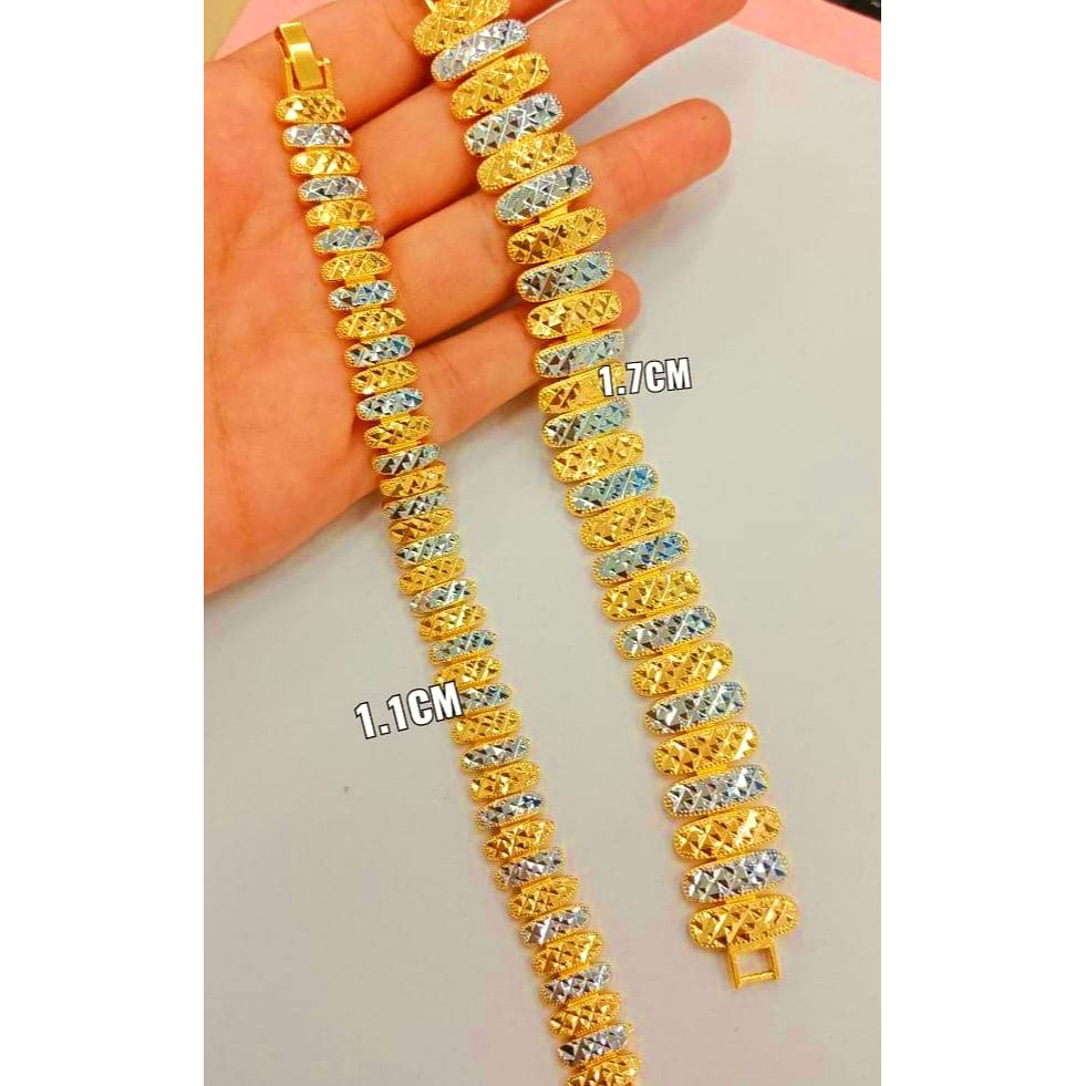 Cop Rantai Tangan Pulut Dakap Lebar 1 1 1 7cm Gold Mix Chrome Emas Korea Bracelets Shopee Singapore