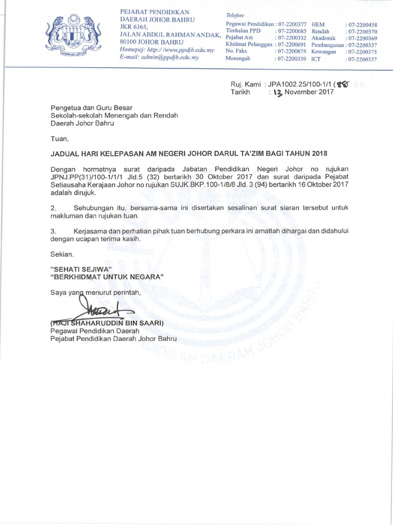 Jadual Cuti Umum Negeri Johor Tahun 2018 Info Inspirasi Resepi