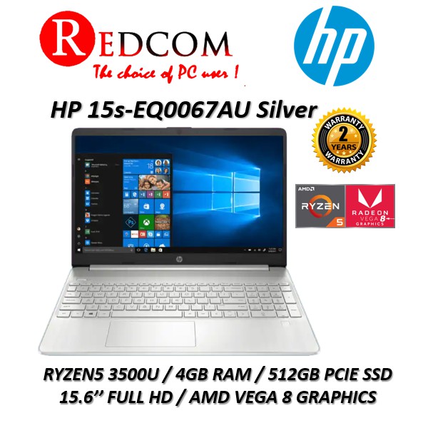 Hp 15s Eq0067au Silver Laptop Ryzen5 3500u 4gb Ram 512gb Ssd 2yrs Shopee Singapore