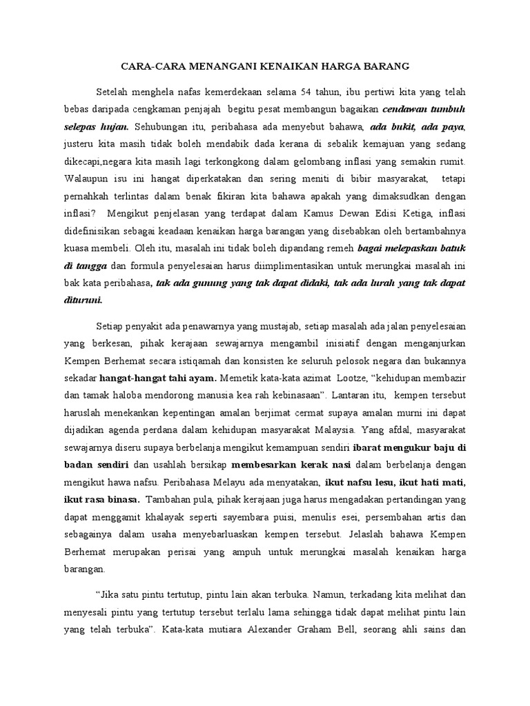 Contoh Karangan Bahasa Melayu Spm Kertas 1 Isu Kenaikan Harga Barang Karangan Bahasa Melayu Spm