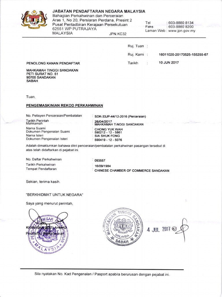 Daftar Perkahwinan Di Jabatan Pendaftaran Negara Bagi Orang Bukan Islam Di Malaysia My Adha