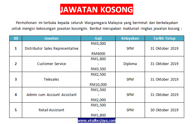 Permohonan Terbuka Jawatan Kosong Admin Retail Assistant Customer Service Ambilan Oktober 2019 Viral Kerjaya