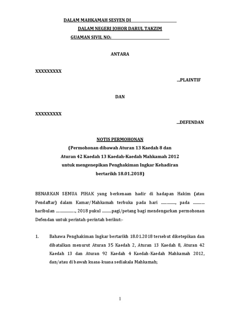 Notis Permohonan Untuk Mengenepikan Penghakiman Ingkar
