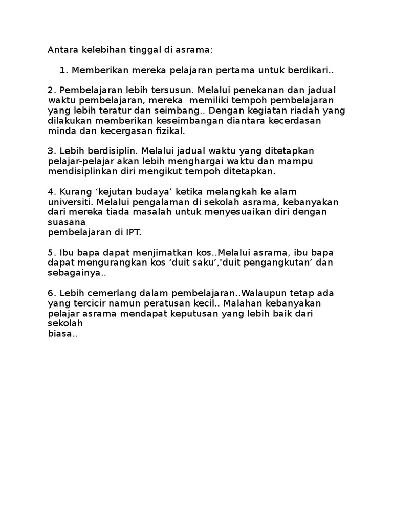 Karangan Kebaikan Tinggal Di Asrama