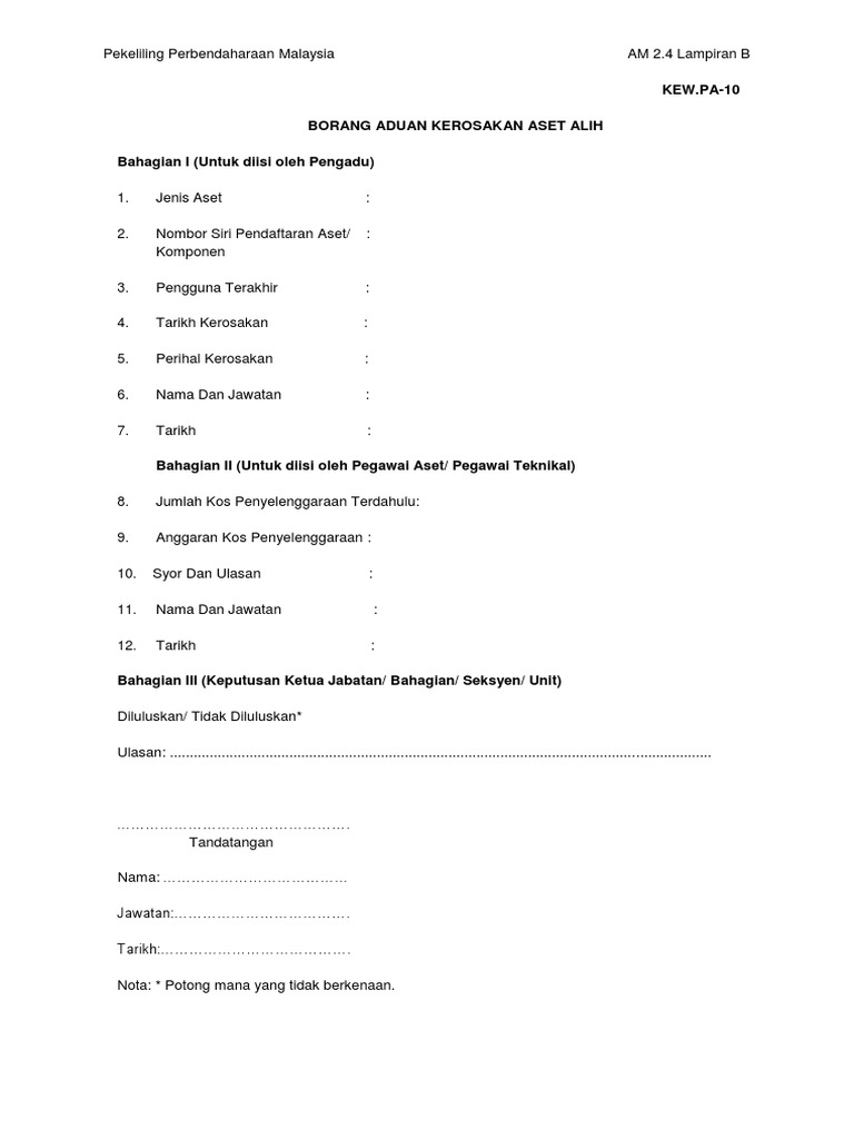 Kew Pa 10 Borang Aduan Kerosakan Aset Alih Kew Pa 10 Borang Aduan Kerosakan Aset Alih Pdf Pdf4pro