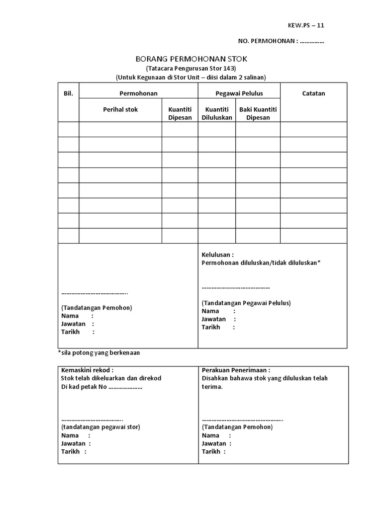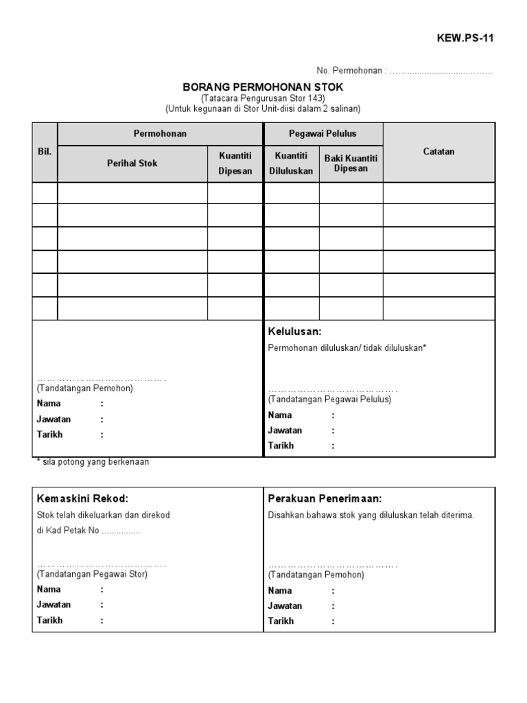 Kew Ps 11 Borang Permohonan Stok Doc Document