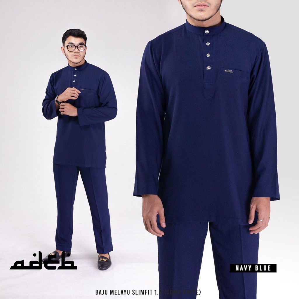 Baju Melayu Moden Slim Fit Biru Gelap Dark Blue Navy Blue Dewasa Ayah Bapa Budak Anak Kanak Kanak Shopee Malaysia