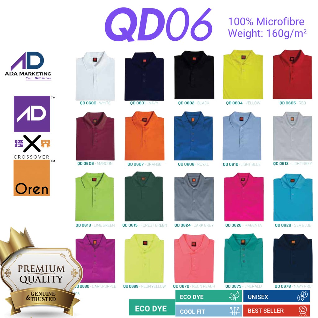Quick Dry Sport Jersey Polo Shirt With Collar Unisex Oren Sport Qd06 Series Polo T Shirt Part 1 Shopee Singapore