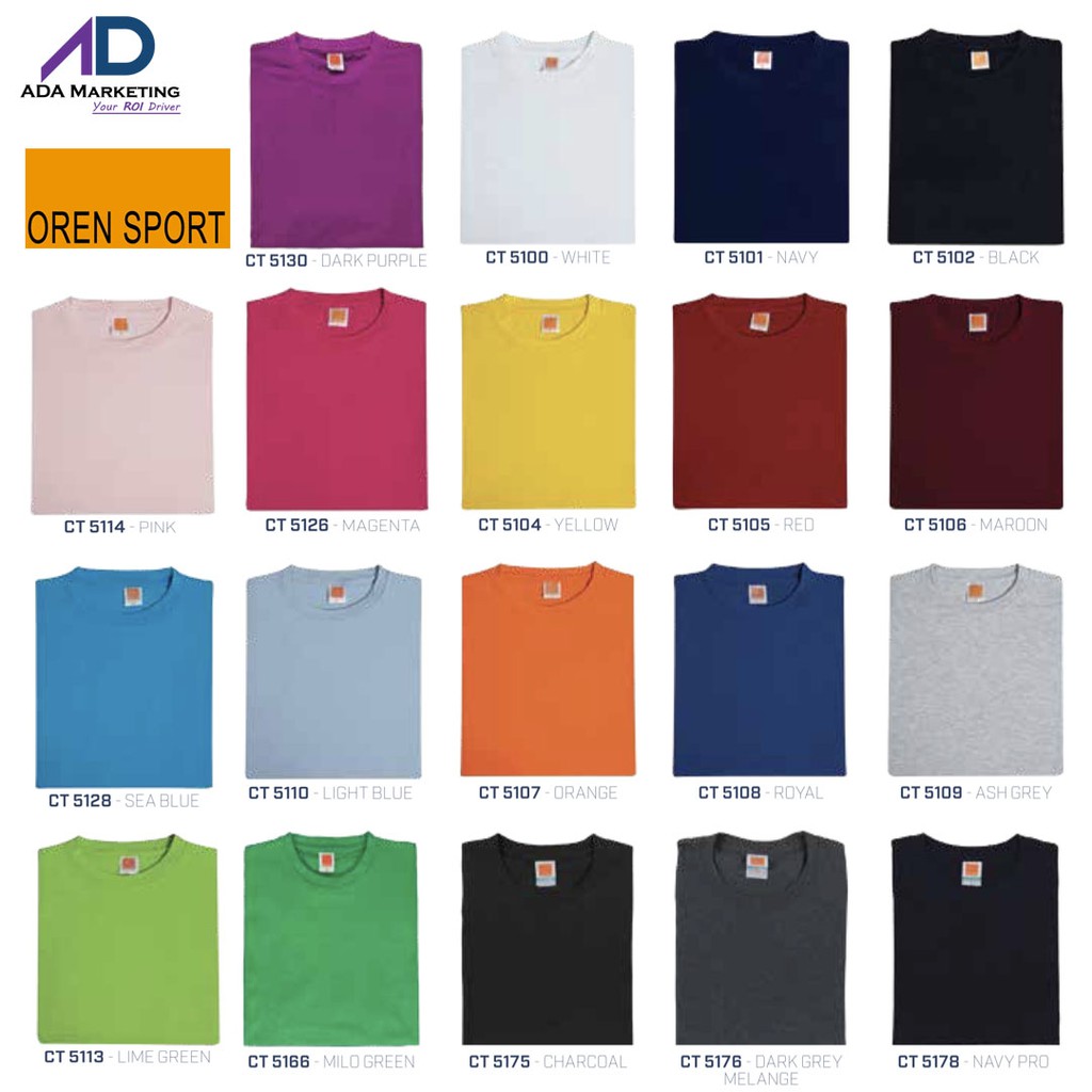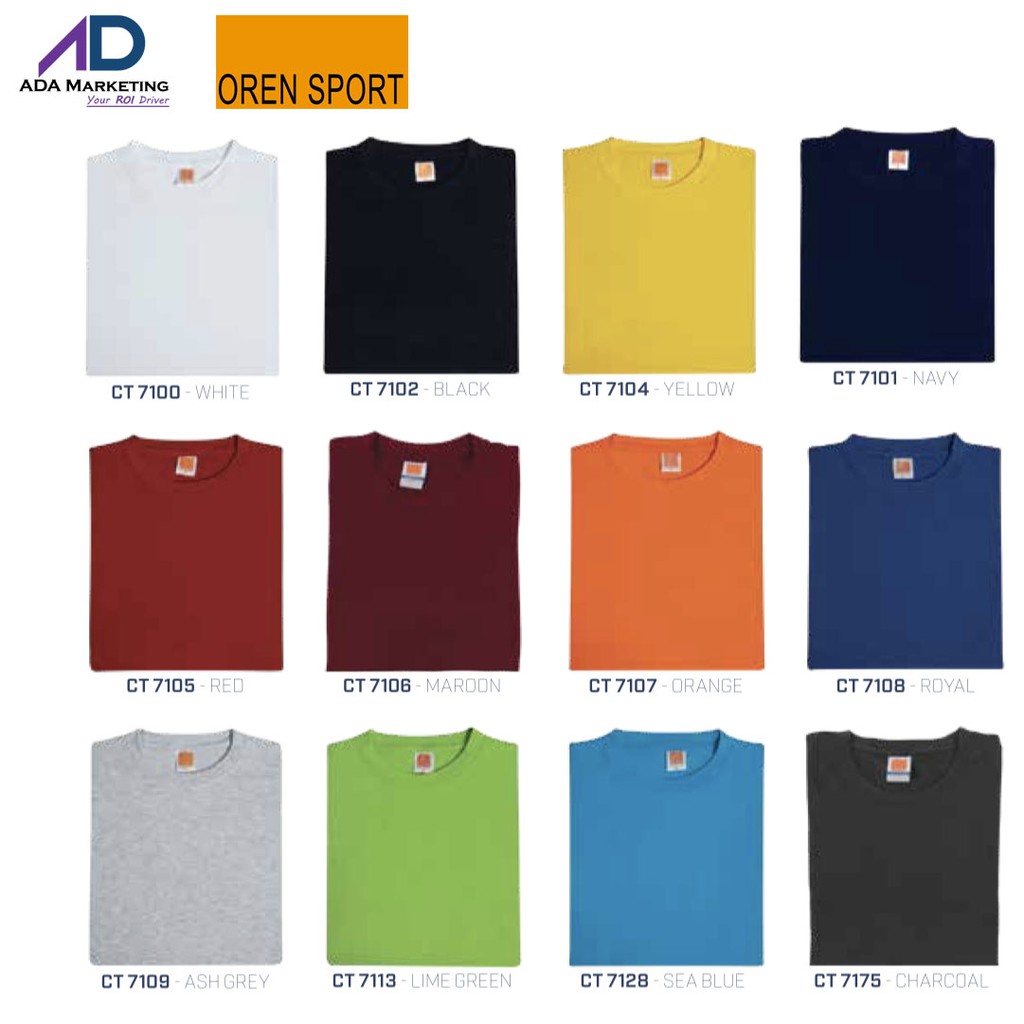 Oren Sport 100 Cotton Plain T Shirt Ct51 Round Neck Unisex T Shirts Shopee Singapore