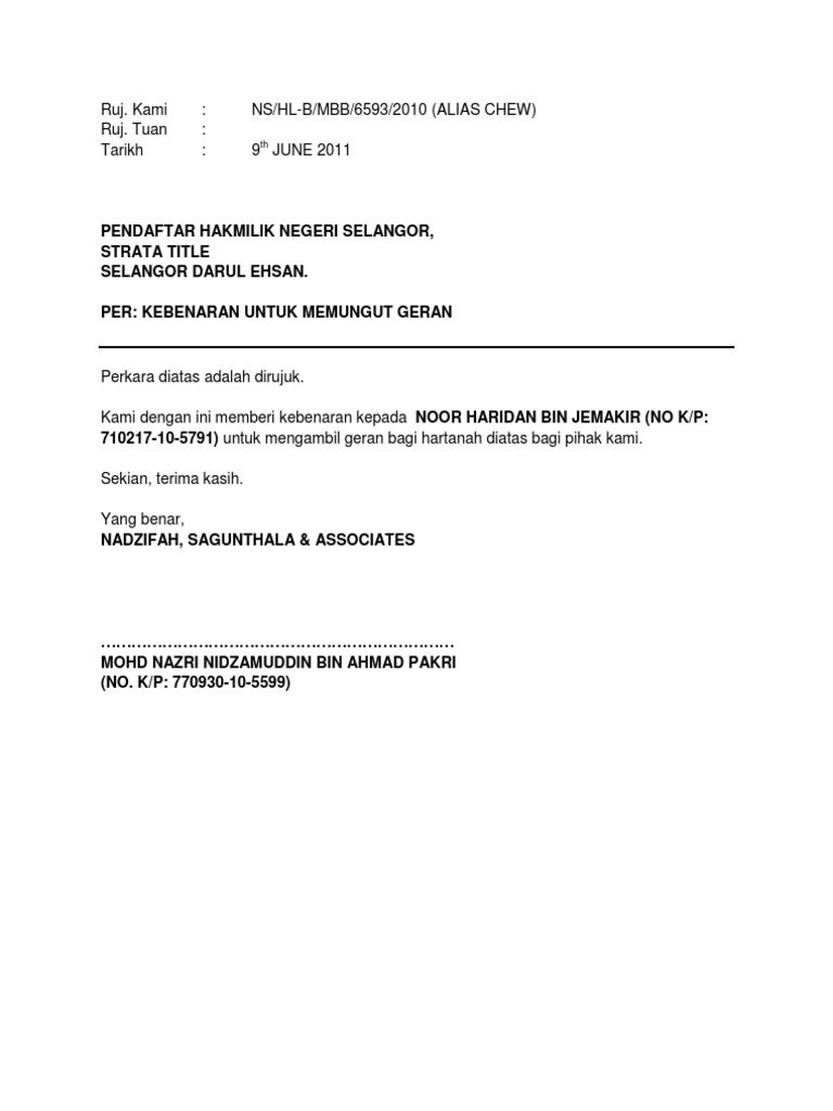 Contoh Surat Permohonan Pendaftaran Hak Milik Format Word Tanda Tanggal Surat