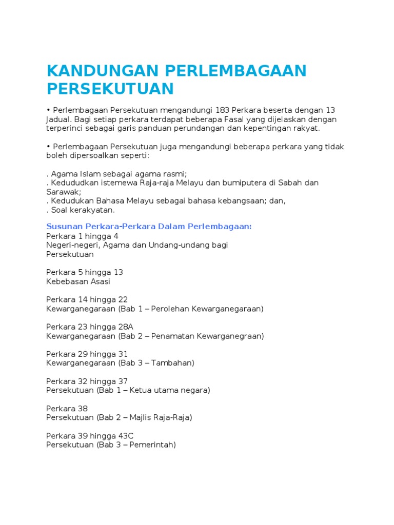 Kandungan Perlembagaan Persekutuan