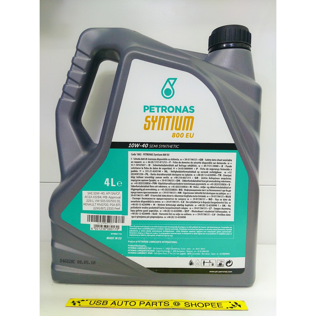 Petronas Syntium 800 800 Eu 10w 40 Semi Synthetic Original Api Sn Cf Shopee Malaysia