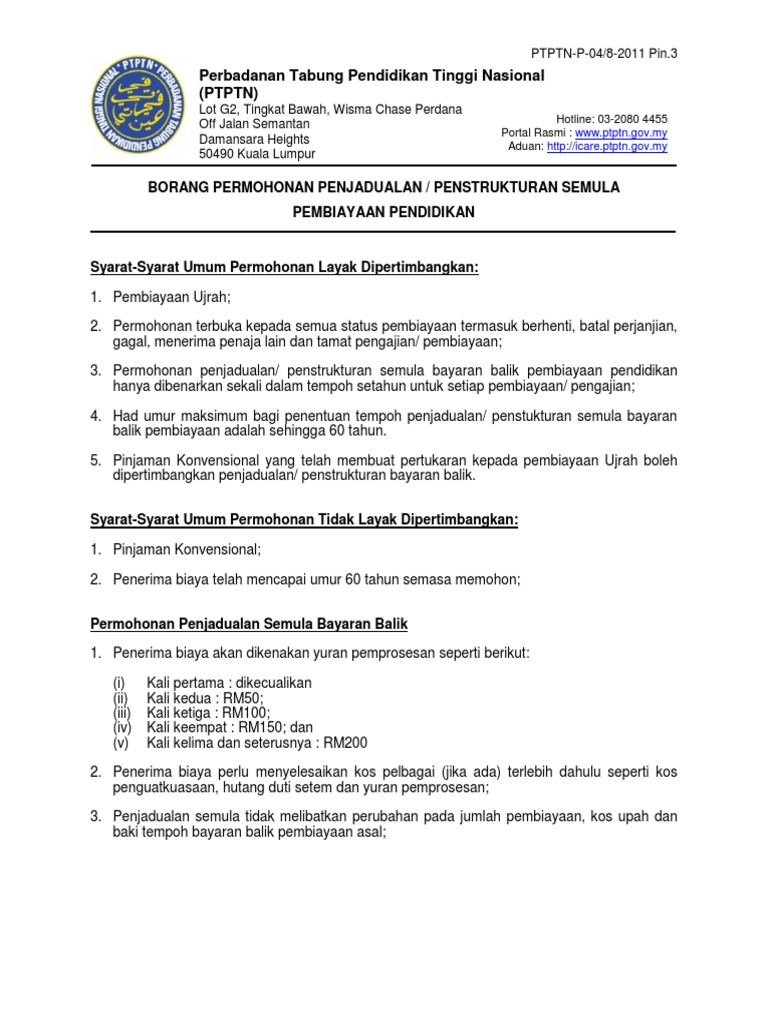 Borang Permohonan Reschedule Restructure Pin 3