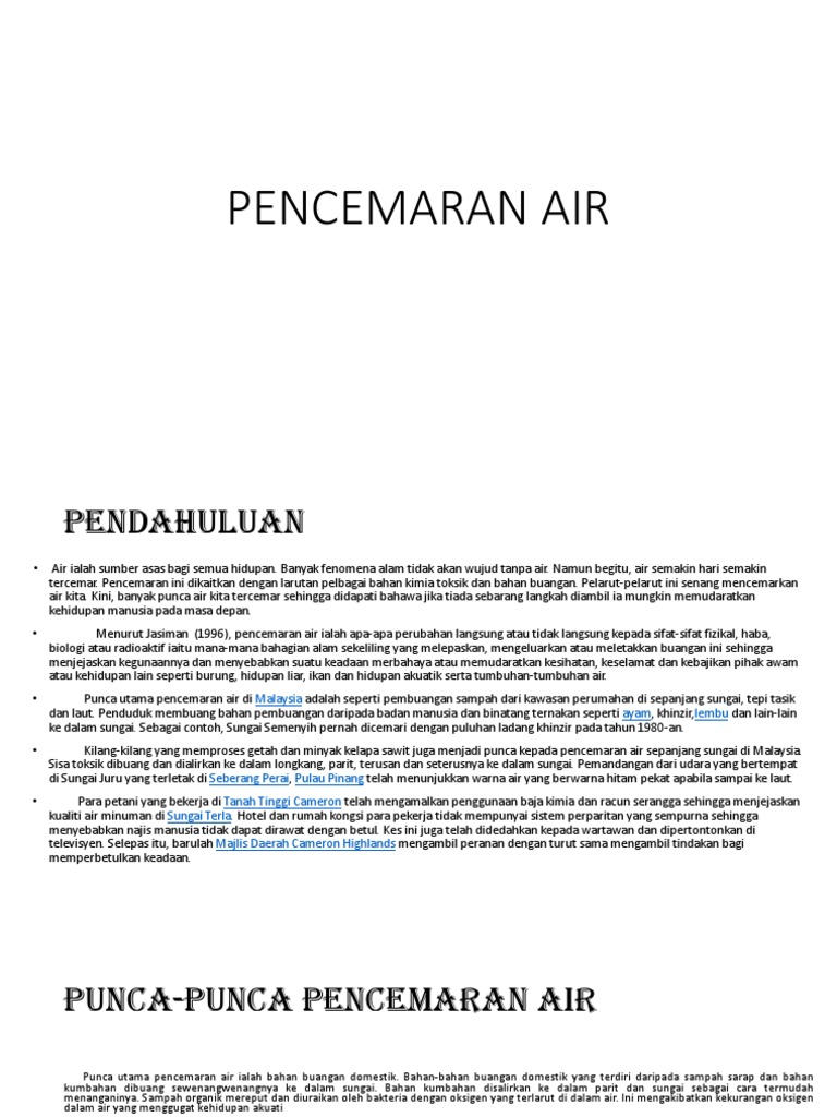 Pencemaran Air Punca Kesan Dan Langkah Pencegahan