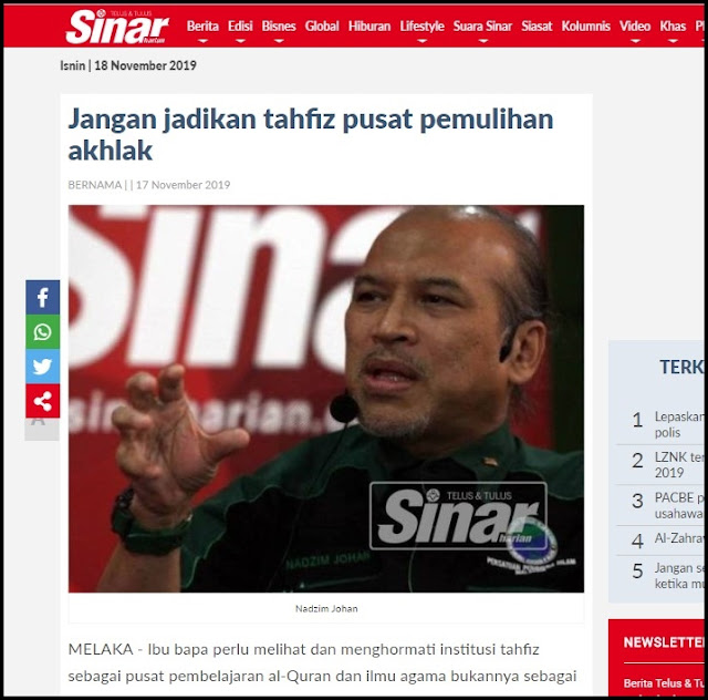 Blog Rasmi Ppim 5499 Jangan Jadikan Tahfiz Pusat Pemulihan Akhlak Sinar Harian 17 11 2019