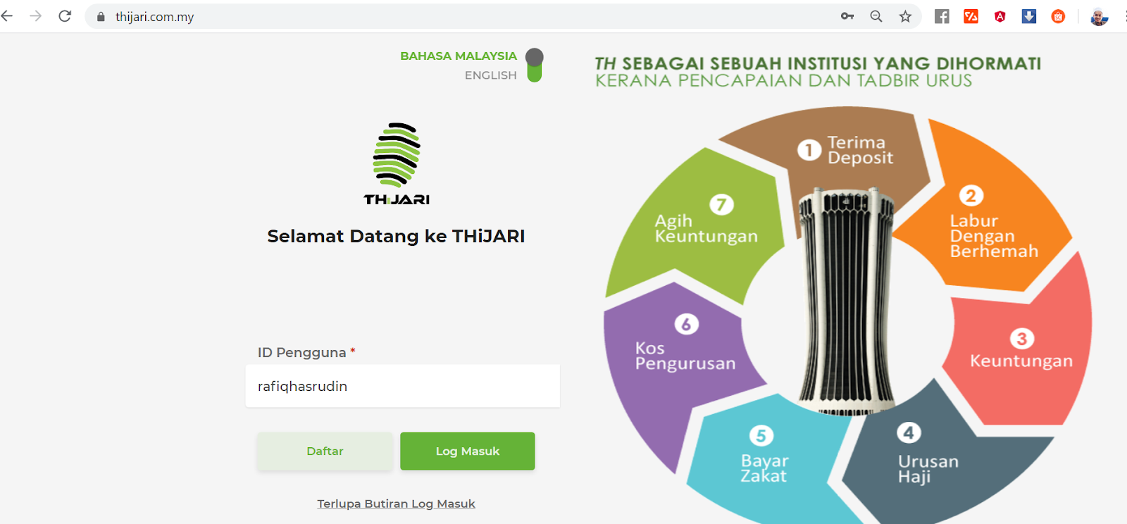 Cara Mudah Login Thijari Sistem Semakan Akaun Tabung Haji Online Mingguan Kerja