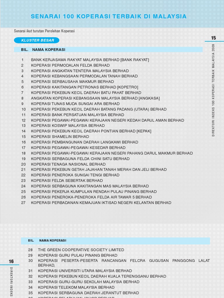 Senarai 100 Koperasi Terbaik Di Malaysia