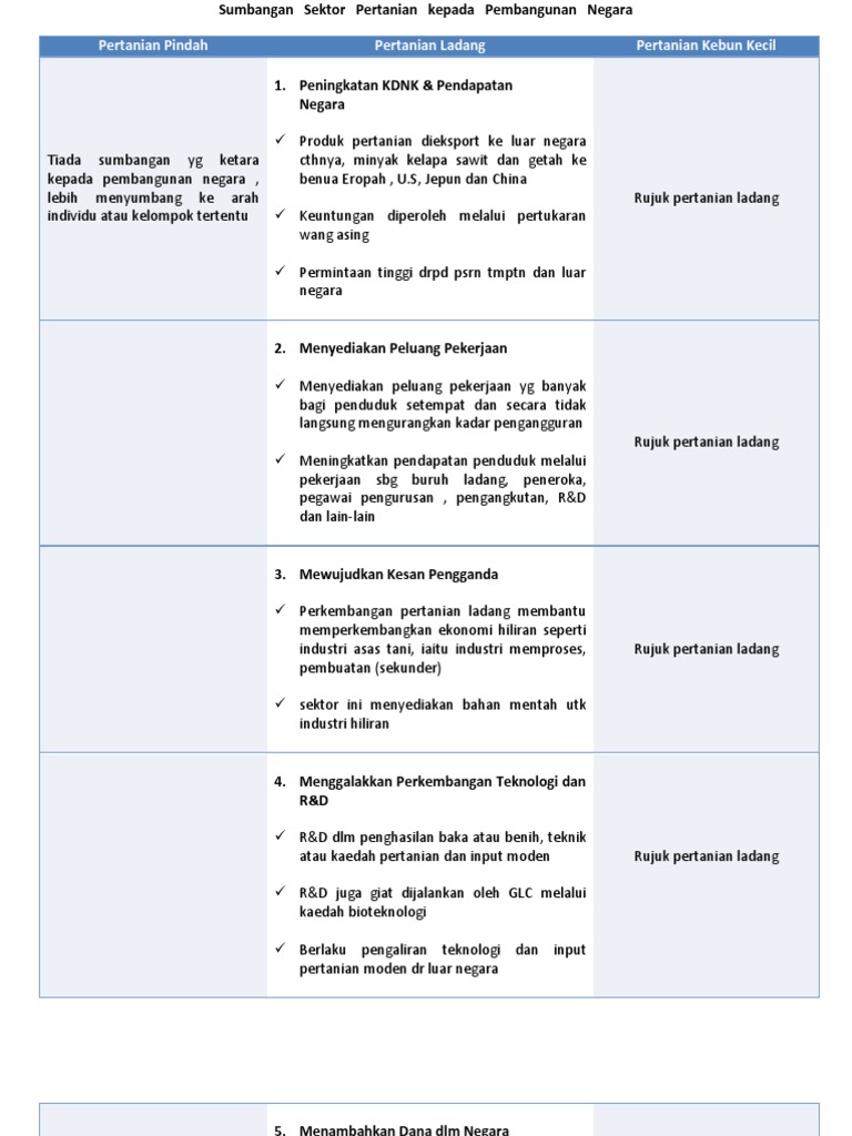 Sumbangan Sektor Pertanian Kepada Pembangunan Negara