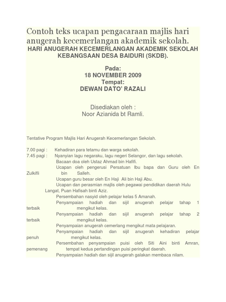 Contoh Teks Ucapan Pengacaraan Majlis Hari Anugerah Kecemerlangan Akademik Sekolah